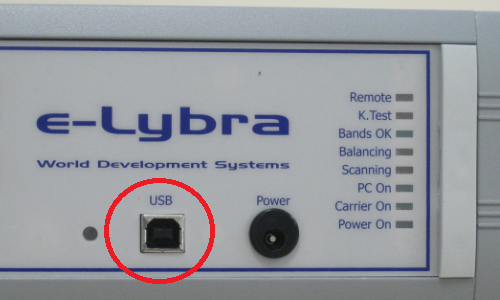 The e-Lybra system comes with a USB type B socket, into which you connect your PC.